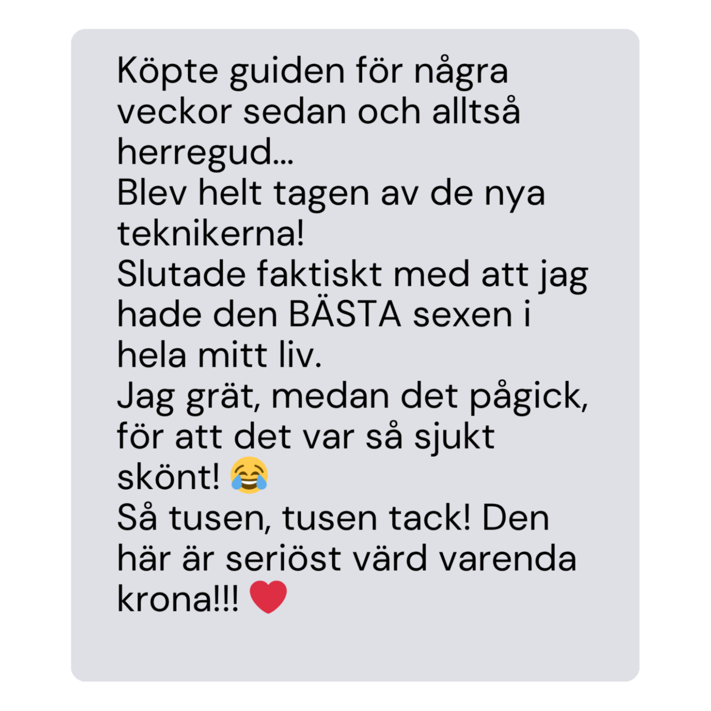 När du sätter dig ner och trycker på play märker du hur befriande det är att slippa undra vad du ska göra eller säga. Du blir tryggt guidad steg för steg – både du som tar emot och din partner som ger.